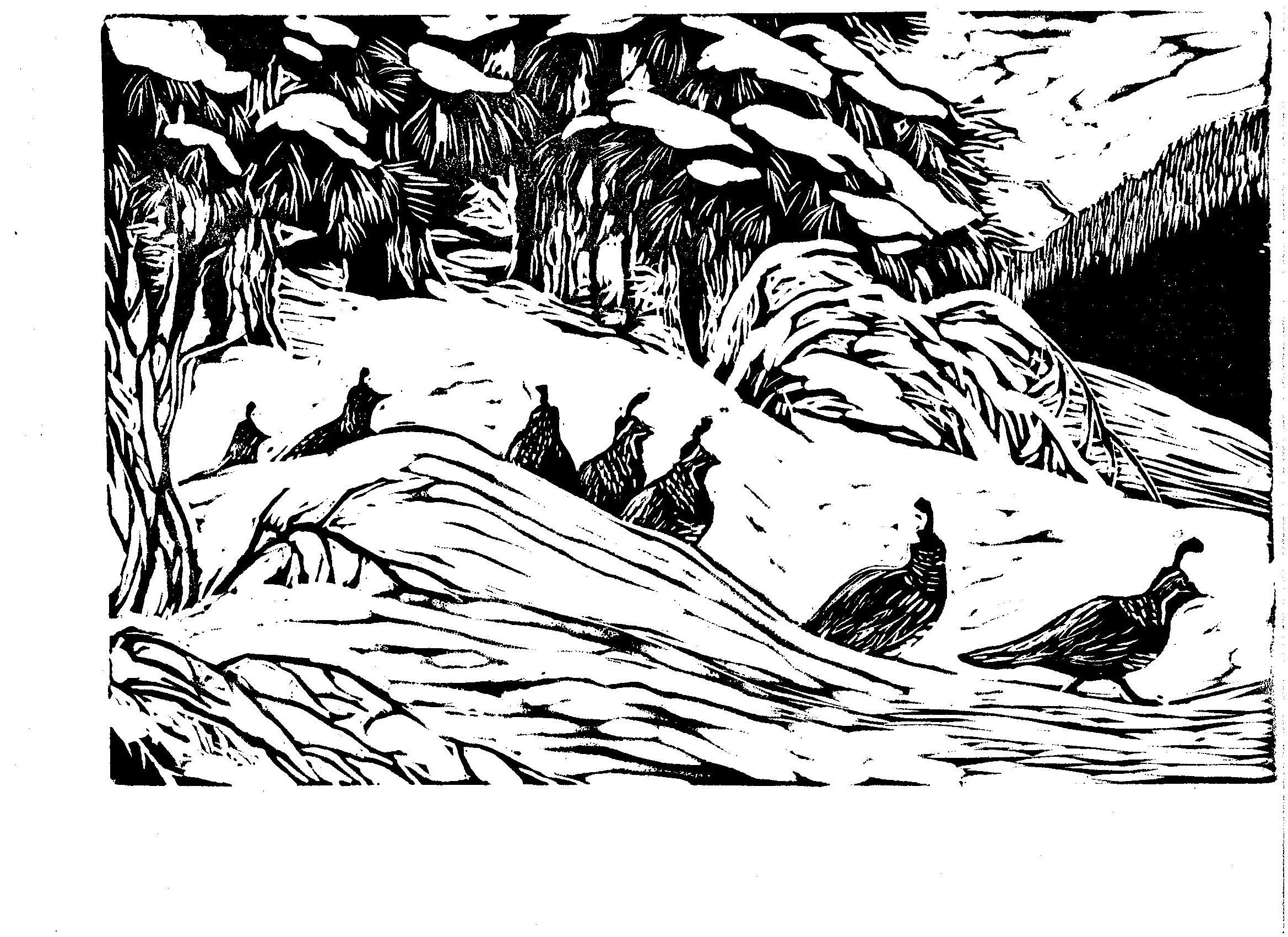 Prints below from upper left: Snow Creek Wall, Snow Cornice, Quail, Pear Orchard, Sand Ridge II, Irish Abbey, Icicle Creek, Madrone Tree, Ponderosa Pines, Crest Trail